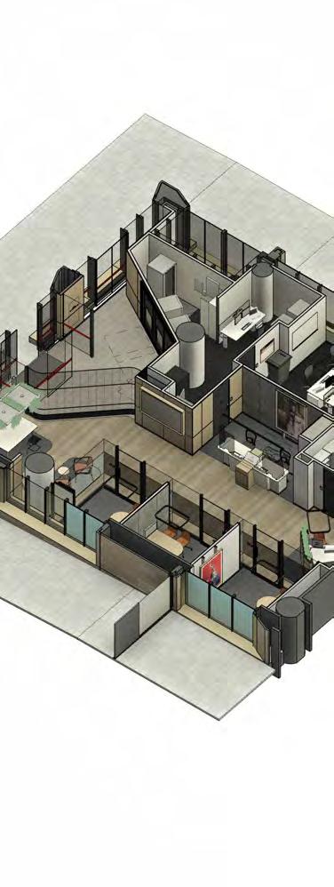 Bespoke solutions were developed speci cally for this branch, ensuring a distinctive banking environment that honors its historical context.