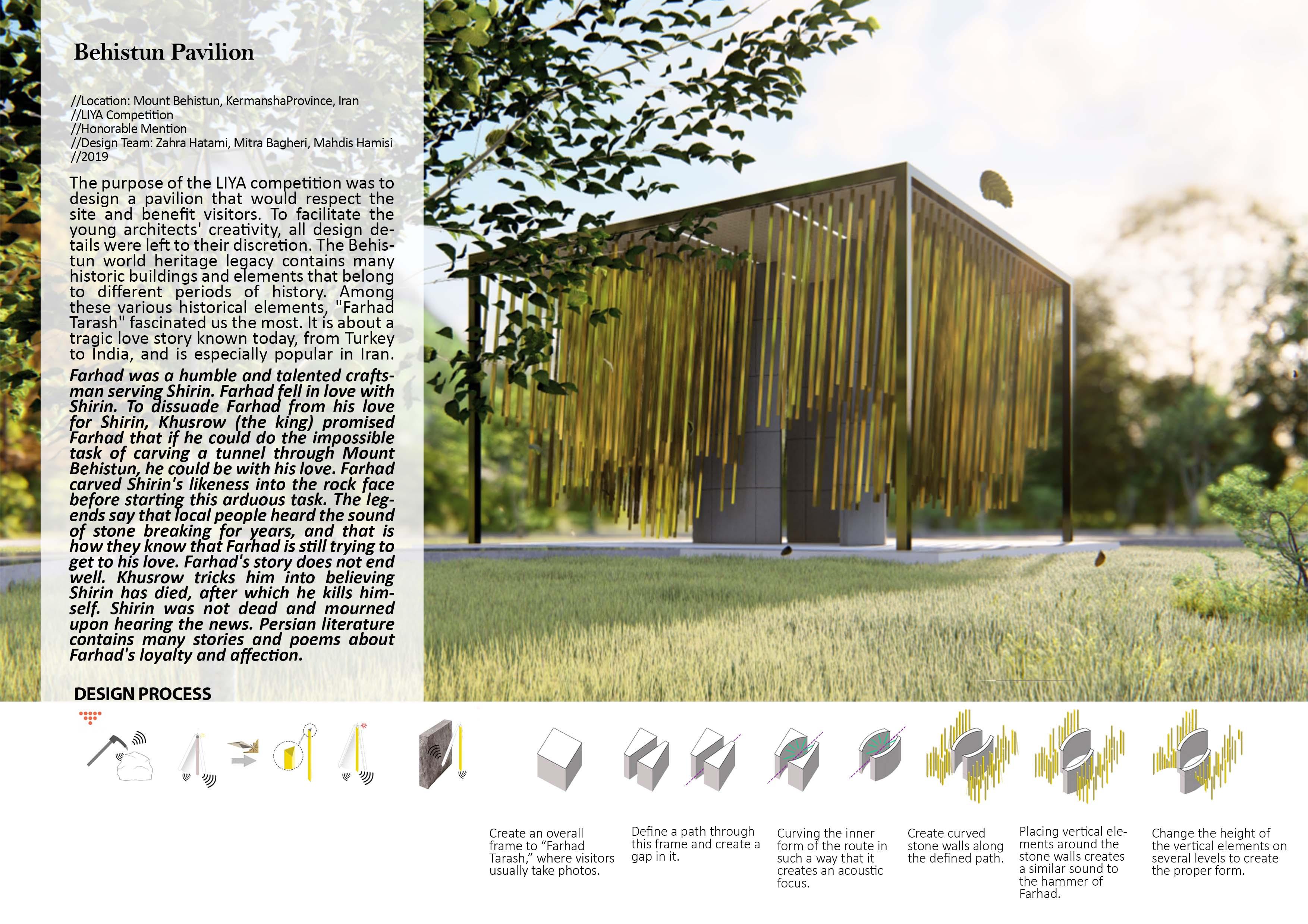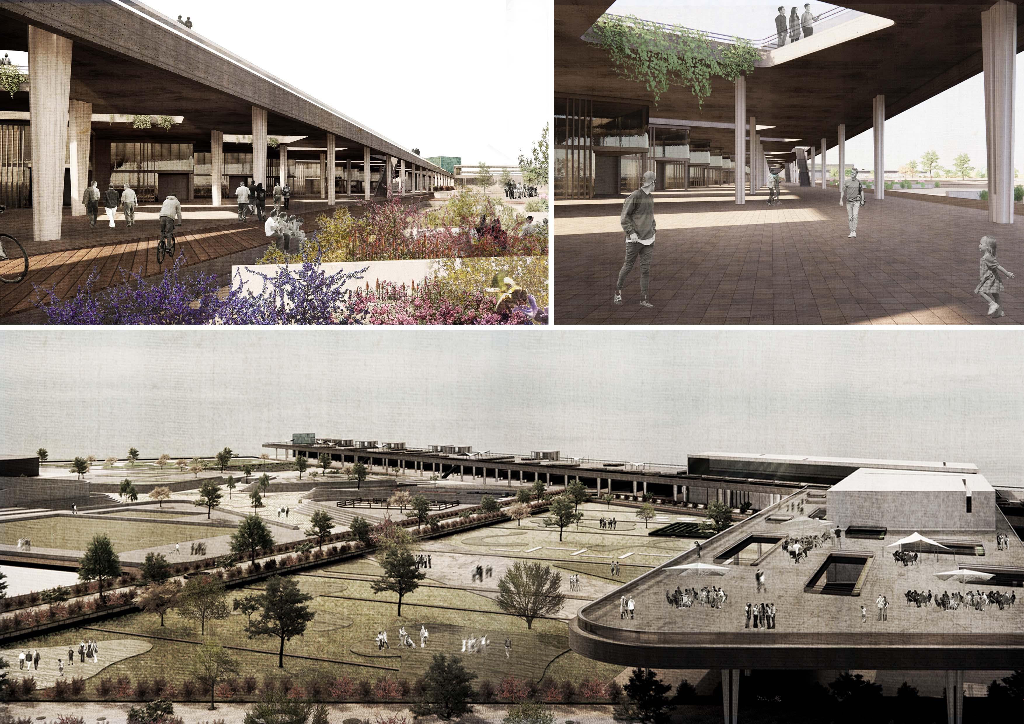 Thisprojecthasbeenselectedasthewinnerof thiscompetitionandwillbeconstructedsoon. Thecomplexincludesrestaurants,cafes,sports fields, playgrounds, conference halls, aquariums,andswimmingpools. Inthiscompetition, Iwasresponsibleforarchitecturalvisualization andpresentationofthedesign.Duetothelong length of the site, the concept of the project was toprovidediverse and deep perspectives for the visitors. Parts of the project are designed exactly like the old bazaars and mosquesinYazd,whichpresentthetraditional Iranianarchitecturalstyle.Ichoseacold-toned, conceptual-likerenderingstyle tohighlightthe most criticalelementsin the design and tone withthetraditionalconceptofthedesign.