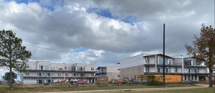 Now under construction – The Albritton, a 147,000 SF residential project by Tannos Development Group at 408 S. Friendswood Dr. Retail and restaurants on ground floor and 111 class-A residential units on upper three floors. Multi-level garage; pool and sun deck above garage.