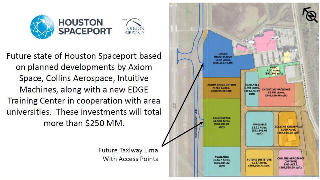 Ellington Airport is home to the Houston Spaceport, the 10th commercial spaceport in the United States, and the only one adjacent to a major metropolitan area.