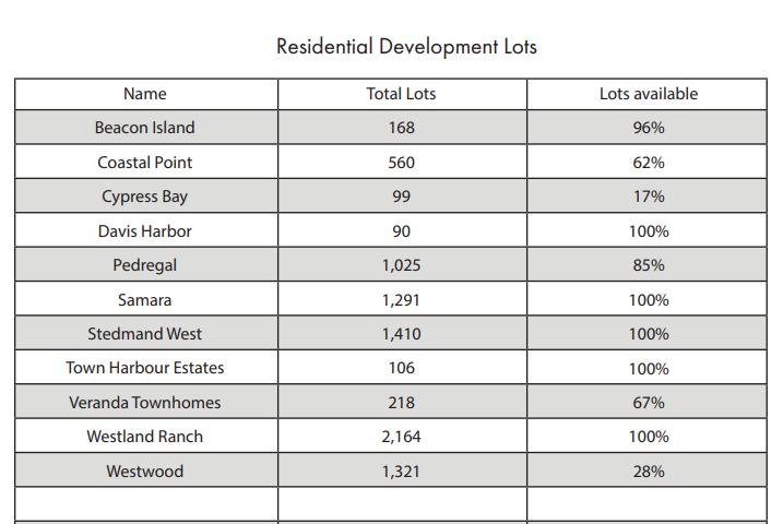 • ~600 single family homes – Beazer Homes & Taylor Morrison. Mid $200’s$400’s, 1,512 - 3,847 SF, 3 to 6 bedrooms