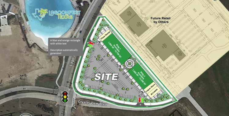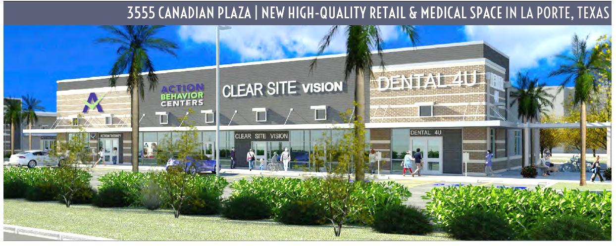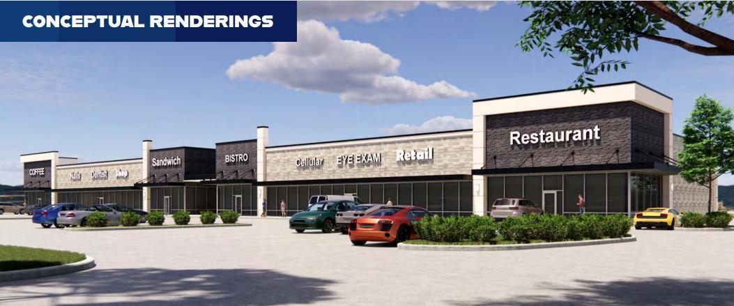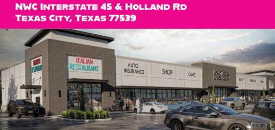 • 20,000 SF in two retail and restaurant buildings, two more consisting of 7,500 SF and 5,000 SF. Fronting SH 146 are 4 pad sites.