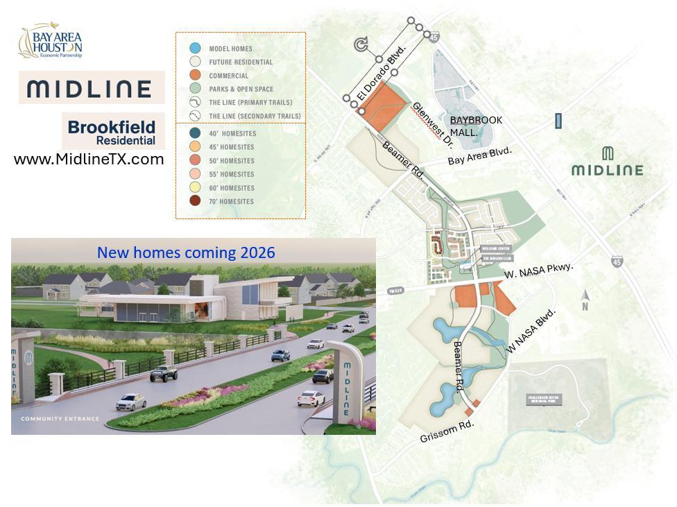 • Development on 200 ac. - Bay Area Blvd. between Spencer Hwy. and W. Fairmont Parkway.