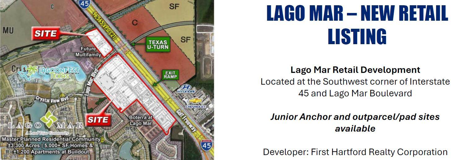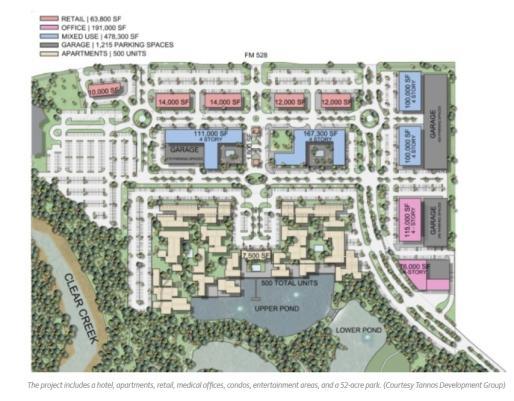 $90 million mixed-use development underway in Taylor Lake Village and El Lago. Modern living & walkability. Construction has started.