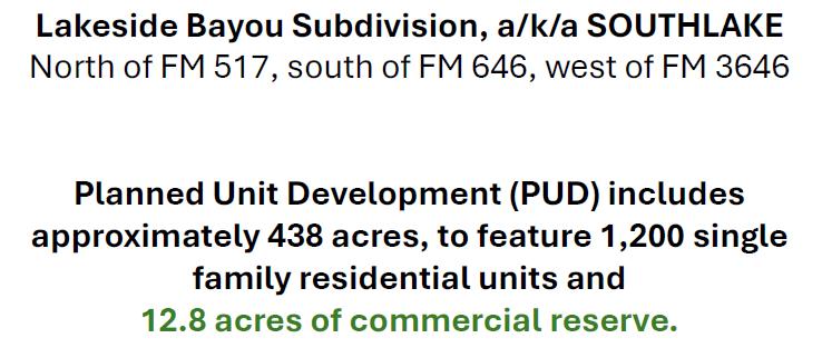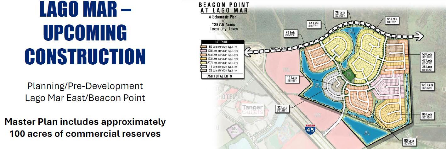Georgetown – Approx. 312 Lots in Friendswood and 71 lots in Alvin. The subdivision includes 2 access points from FM 528.