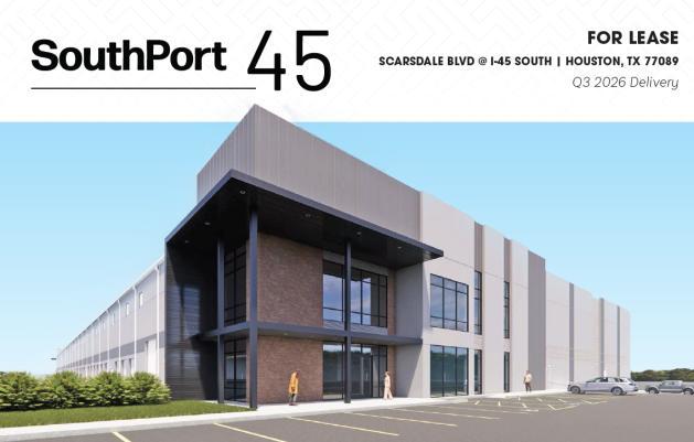 Construction is complete on Gauge Southgate in Houston at 13415 Conklin Lane on ~ 12.65 ac. Specs: 3 buildings totaling 192,660 SF. Bldg. A - 33,600 SF, rear-load, 28’ clear height, 15 dock-high doors, 1 ramp, 800 amps. Bldg. B - 77,160 SF, front-load, 32’ clear height, 19 dock-high doors, 1 ramp, 800 amps (potential increase to 1,600 amps). Bldg. C - 81,900 SF, frontload, 32’ clear height, 15 dock-high doors, 2 ramps, 800 amps with potential of 1,600 amps. All are ESFR and have some office space. Shell is complete. Development by Gauge Real Estate Partners.