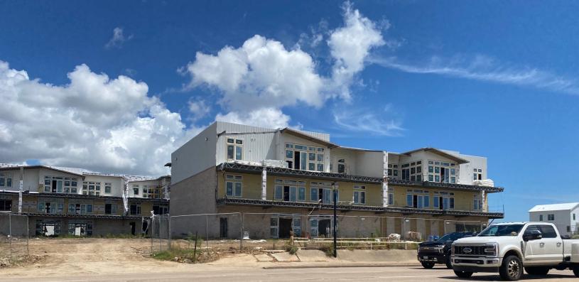Now under construction – The Albritton, a 147,000 SF residential project by Tannos Development Group at 408 S. Friendswood Dr. Retail and restaurants on ground floor and 111 class-A residential units on upper three floors. Multi-level garage; pool and sun deck above garage.
