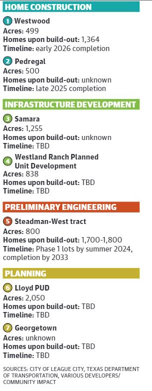 Beamer Road Business Park – Planned are nine buildings along Beamer Road between FM 2351 and El Dorado Blvd. Buildings are between 10,000 SF and 22,750 SF, 10-ton and 20-ton crane ready with gradelevel doors, and 24’ to 28’ eave height. The buildings are for sale or lease and will be available Q2 2025