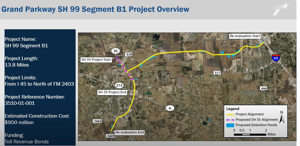 ▪ The remaining work on the overall project includes frontage roads, signals, railing, sodding, and drainage.