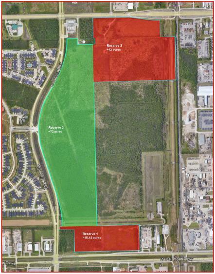 Reserve 3 is 72 acres. Available for retail, entertainment, and dining.