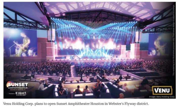 Sunset Amphitheater is planned to open at Webster’s Flyway District. The 12,500-seat multi-seasonal amphitheater is planned on 34 acres; adjacent land will be used for parking and infrastructure. A 350-seat membership-based elevated space – the Aikman Club – is planned along with 217 Luxe FireSuites. Colorado-based Venu Holding Corp. is working with the City and the Webster Economic Development Corp.