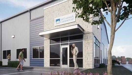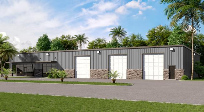 Seven free-standing office warehouses under construction on 6 acres. Specs: steel w/ stone veneer, grade level doors, 18’ ceiling height, 6,000 to 8,000 SF. Buildings are for sale. Morrison Development, LLC project.