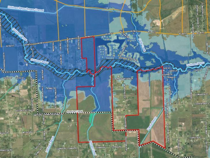 Friendswood City Center is underway on a 106-acre tract along FM 528 at Blackhawk Blvd. near Bay Area Blvd.