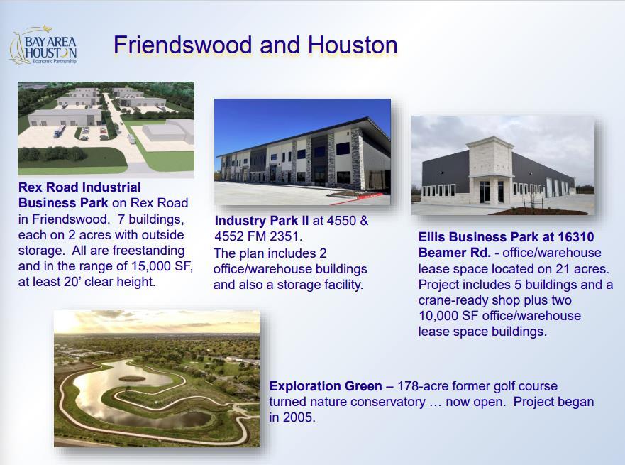 New development on 400 ac. - Bay Area Blvd. between Spencer Hwy. and W. Fairmont Parkway. 134 acres available for retail and commercial Morgan’s Landing -- 235-acres