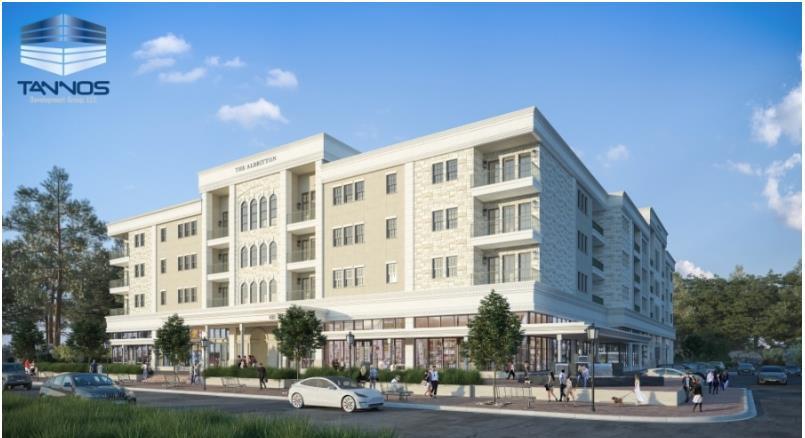 Now under construction – The Albritton, a 147,000 SF residential project by Tannos Development Group at 408 S. Friendswood Dr. Retail and restaurants on ground floor and 111 class-A residential units on upper three floors. Multi-level garage; pool and sun deck above garage.