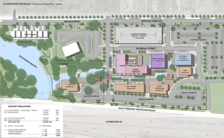 • Gulf Breeze development is moving forward. 700 homes on FM 2004 on the west side of SH 6 near the former blimp base. Commercial land set aside. Civil infrastructure begins by summer.
