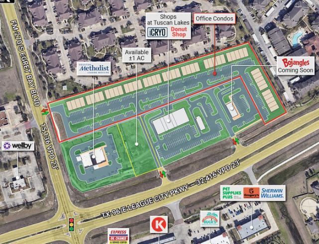 Shops at Baybrook, SEC of Bay Area Blvd. and Gulf Freeway. One pad remaining plus 1,500 SF of retail. Most are now open!