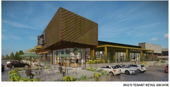 • 19,020 SF mixed-use space surrounding the multifamily development. Available pad sites up to 6,500 SF; retail space up to 8,840 SF.