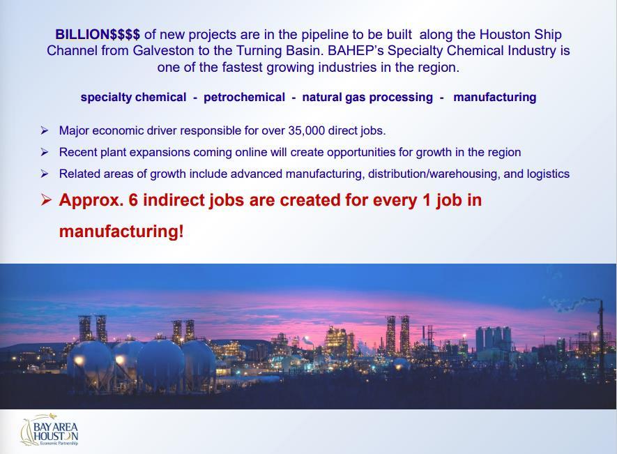 College of the Mainland –recent opening of a new Industrial Careers Building and completion of STEAM and Admin buildings. Four new buildings are planned including a library and 3-story classroom.