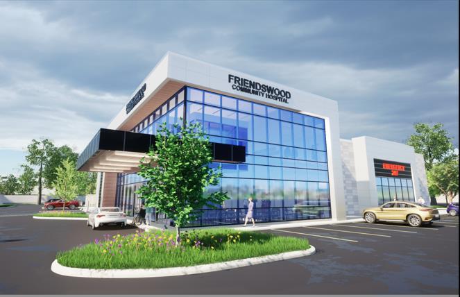 Friendswood Community Hospital at 3201 E. FM 518. Micro hospital with 24 beds for emergency and short-term hospital stays.