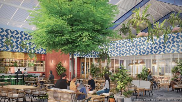 It’s a work in progress … Fischer Acquisitions and Development proposes to double the 5,000 SF ballroom and replace the existing outdoor pool with an extended adult waterpark with a lazy river and swim-up bar.
