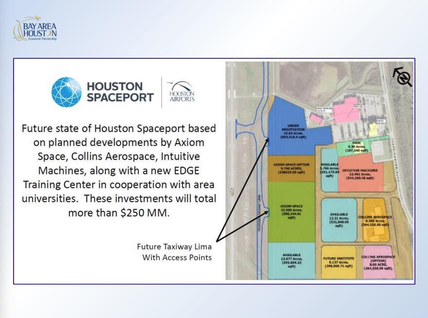 Intuitive Machines will expand the capacity of the Lunar Production and Operations Center at the Spaceport by 50%. HoustonAirport System is prioritizing the completion of a $16M taxiway at Ellington Airport.