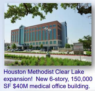 HCA Houston Healthcare Clear Lake at 500 W. Medical Center Blvd. in Webster is in the early stage of a $40M, 3-story expansion to the main building. This will bring an additional 125,000 SF, 60 new beds and 10 new delivery rooms. Expansion is set for completion late 2026.
