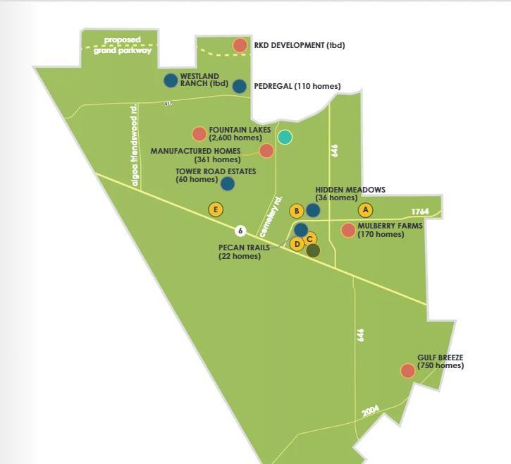 There are 3,000 homes in various stages of development on the west side of the Gulf Fwy.