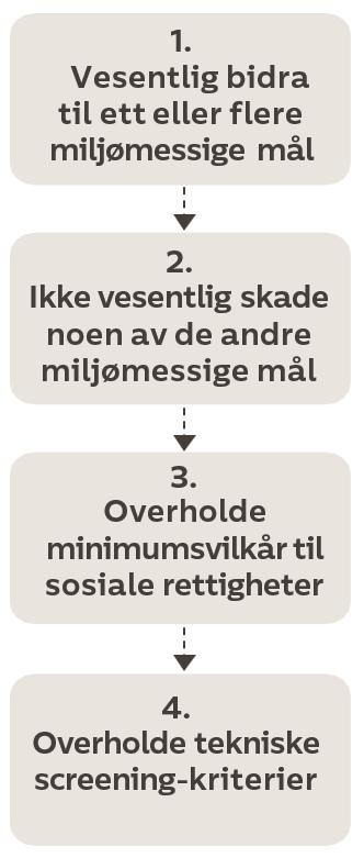 Taksonomien oppstiller fire vilkår som må oppfylles for at en spesifikk økonomisk aktivitet skal anses som miljømessig bærekraftig: