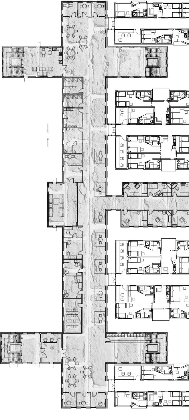 Over the course of ten weeks, we were given the challenge to create a facility for the aging population. The main goal was to create something different from the failing systems already in place. Our group decided that the main focus should be to bring care to the people that need it, in a way that allows them to customize to their level of need and taste. The issues that we found with current health care facilities could be erased through our system of customizable walls and rooms. After more research, we found that these systems could be used for different archetypes, and changed as needed, even down to the location of the spaces as time and care level changed.