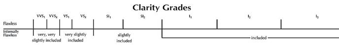 Clarity is an indication of a diamond’s rarity. All diamonds, except the most rare, have internal and/or external characteristics called inclusions. Inclusions are the result of the tremendous pressure and heat present when a diamond is formed. These characteristics help gemologists distinguish natural diamonds from synthetics and simulants. They also help identify individual diamonds and thus serve as a diamond’s “birthmark”.