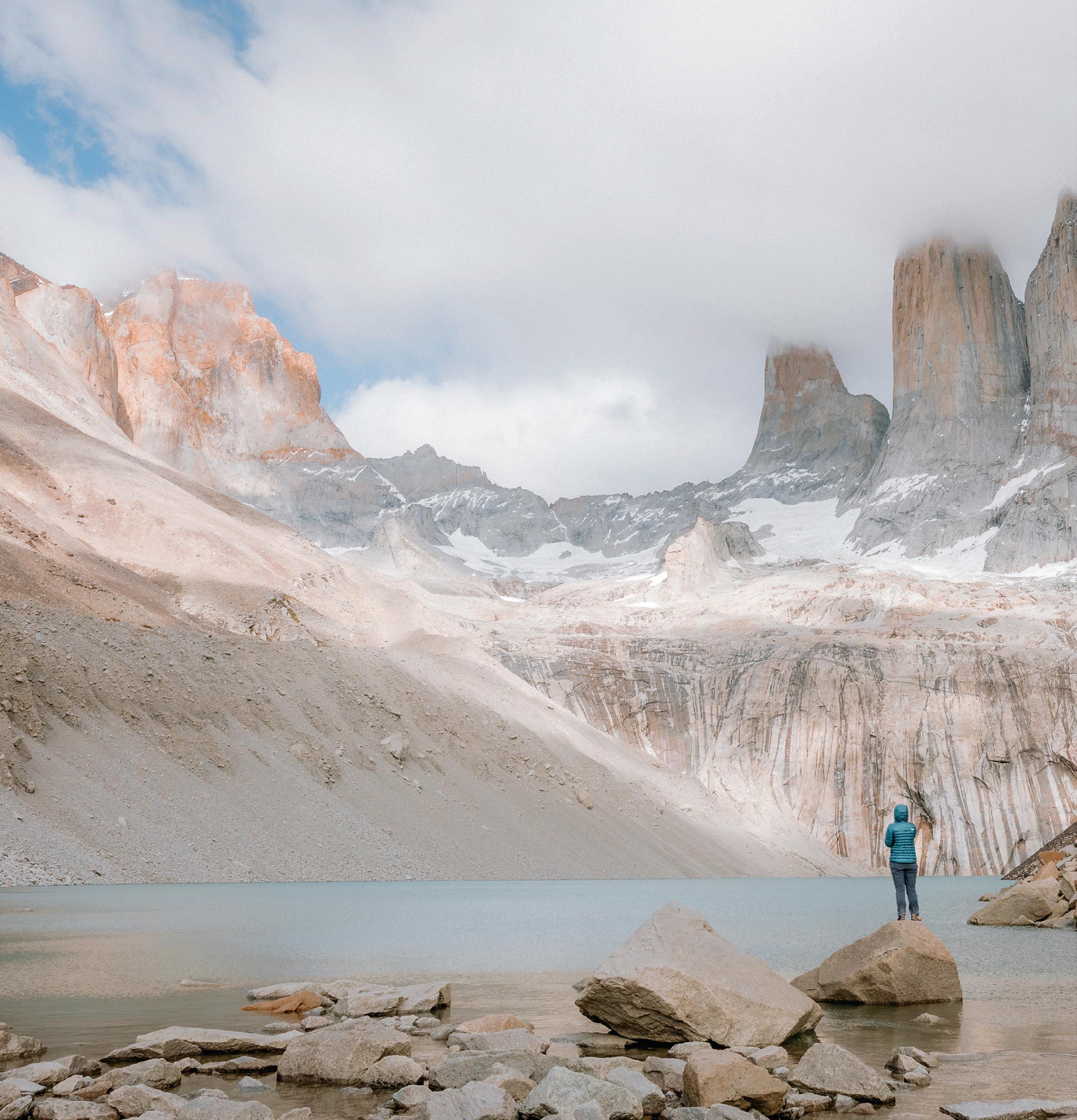 Uma caminhada icônica em Torres del Paine que é desafiadora e inspiradora em igual medida. Seu guia particular te conduzirá ao longo das margens do Rio Ascensio, através da floresta de lenga e por algumas inclinações curtas – estabelecendo um ritmo confortável antes da subida final até a base das imponentes Torres e seu lago glacial. Você pode surpreender um tímido huemul (um raro cervo patagônico) ou um pica-pau-de-magalhães, ou encontrar flora que existe apenas nessas latitudes e altitudes, como pequenas orquídeas endêmicas. Uma deliciosa sopa de recompensa aguarda no cume, para te aquecer enquanto você absorve a majestade da paisagem ao redor.