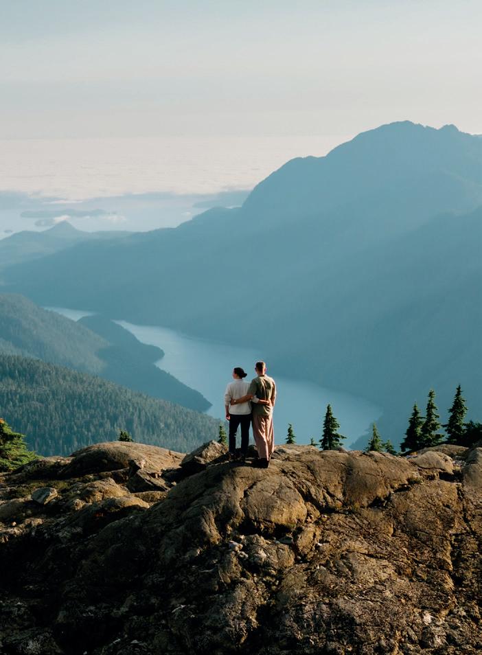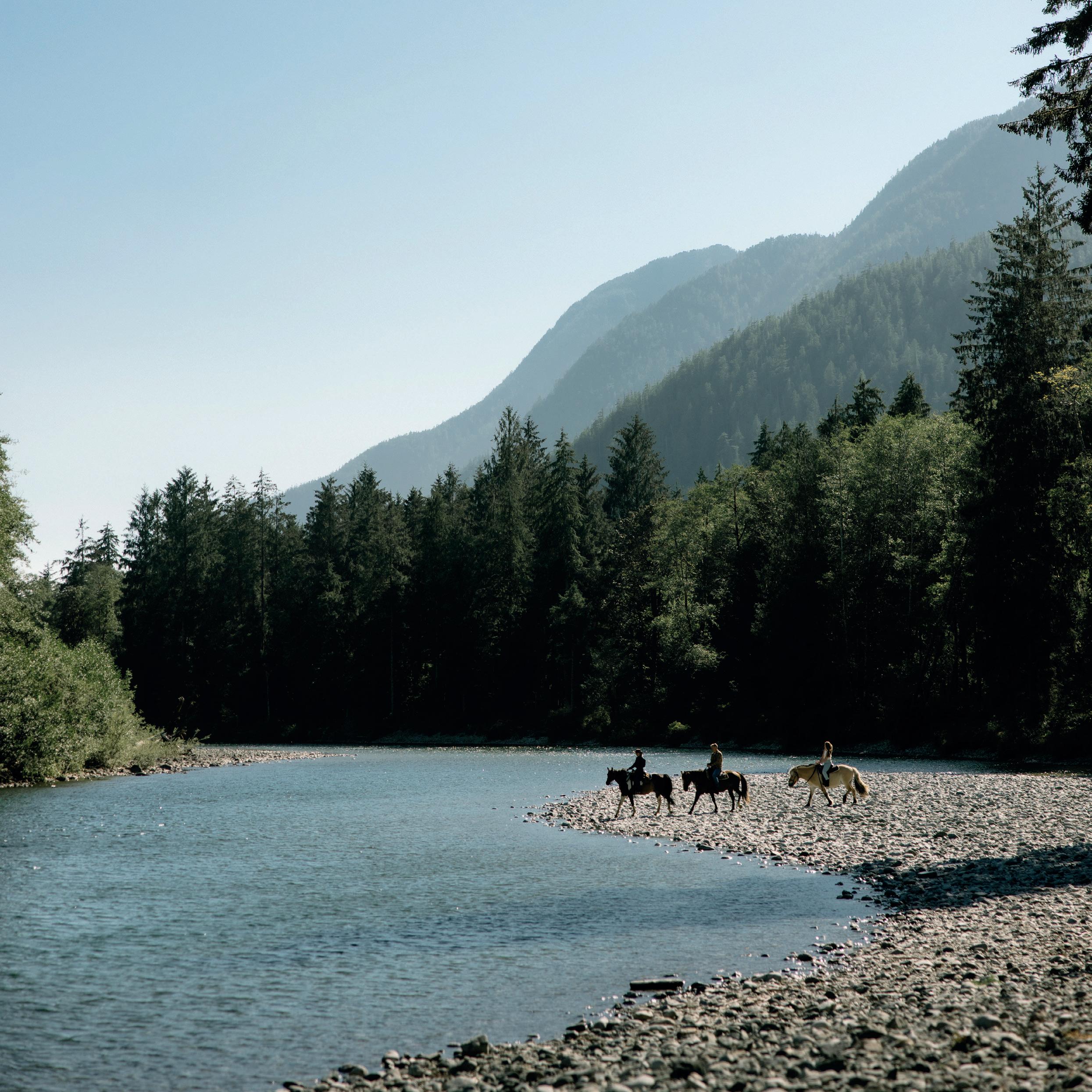 Um helicóptero sobrevoa as florestas em um passeio cênico até o cume de 1.219 metros da Montanha Ursus, onde um aperitivo de vinho espumante e charcutaria artesanal acompanham vistas arrebatadoras sobre o Clayoquot Sound. Os dias ao redor te colocam em contato íntimo com a natureza – caminhando por ravinas alimentadas por geleiras, explorando o Vale Bedwell a cavalo e navegando pelo Sound, avistando ursos-negros, lontras, leões-marinhos e orcas.