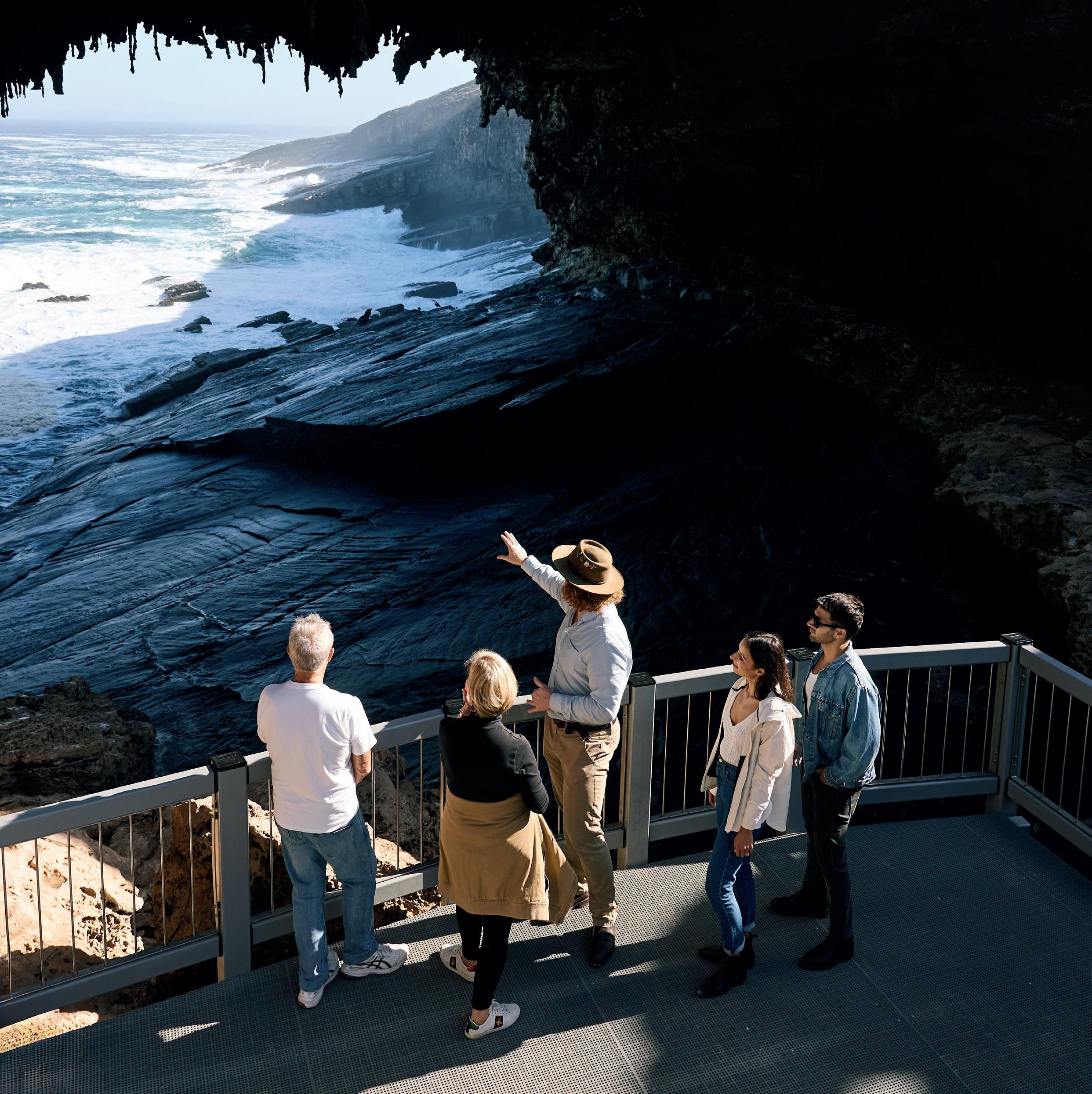 Viaja por un espectacular paseo marítimo junto a un acantilado desde Admirals Arch hasta el histórico faro de Cape du Couedic, donde los lobos marinos de dos pelos retozan en enormes oleadas oceánicas alrededor de un espectacular santuario natural en el extremo sur de la isla (la siguiente parada es la Antártida).