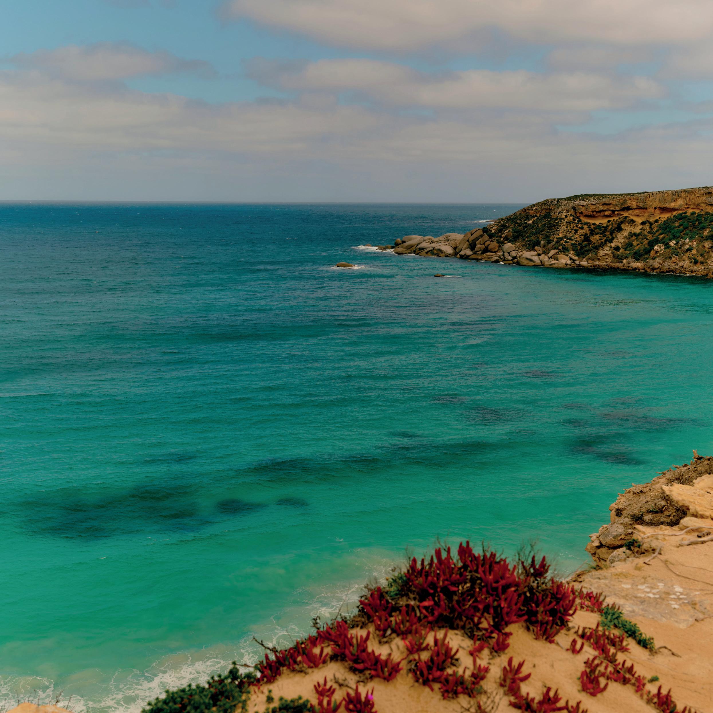 A continuación, explora los monolitos de granito esculpidos por el viento de las icónicas Remarkable Rocks, de 500 millones de años de antigüedad, con sus superficies brillantes, adornadas con floraciones de líquenes dorados, que ofrecen un lienzo de color en constante cambio a la luz del océano.