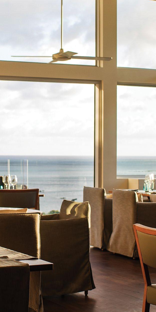 A contemporary architectural design presents generous indoor-outdoor lounging areas and a light-filled, expansive bar and restaurant, with ceiling-high glass that opens beneath a dramatic skillion roof seeming to reach to the mountain peaks beyond. Outside, Gowers Terrace offers luxurious lounging with a view, ideal for relaxing or enjoying sunset drinks, while a horizon pool invites a languid dip. Inside, a feeling of relaxed sophistication flows throughout. Beach house style furnishings and custom fabrics complement island-inspired artworks and recycled wooden floors to create an easy ambience.