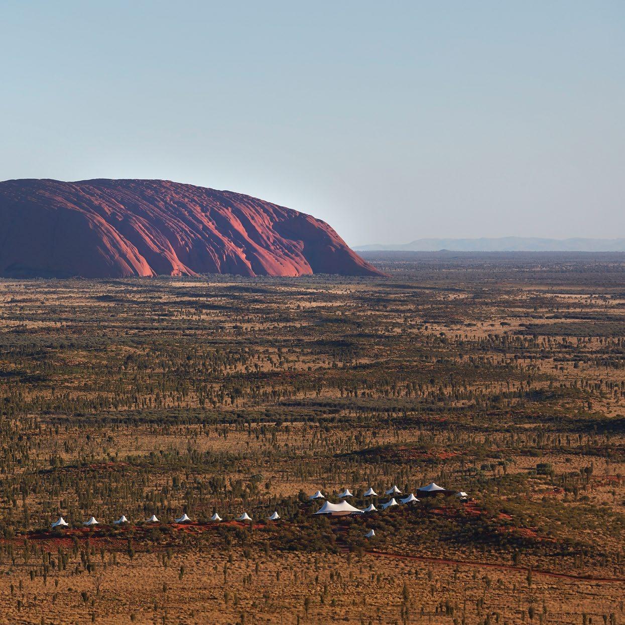 ‘ The footprint is light on the earth, the lodge is hunkered low, there is nothing between you and the 600 million-year-old Uluru except red, raw landscape.’