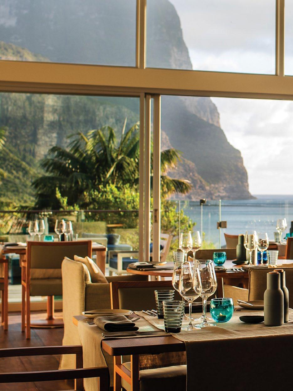 The restaurant opens to spectacular views of the lagoon and mountains, offering an idyllic backdrop for dining at every occasion throughout the day. Outdoors, the simple pleasure of a long and lazy barbecue lunch is a favourite Lord Howe tradition, with optional fish feeding, snorkelling or a quick dip. Fresh, produce-driven menus change daily to showcase locally sourced and often organic ingredients accompanied by lodge-made specialities.