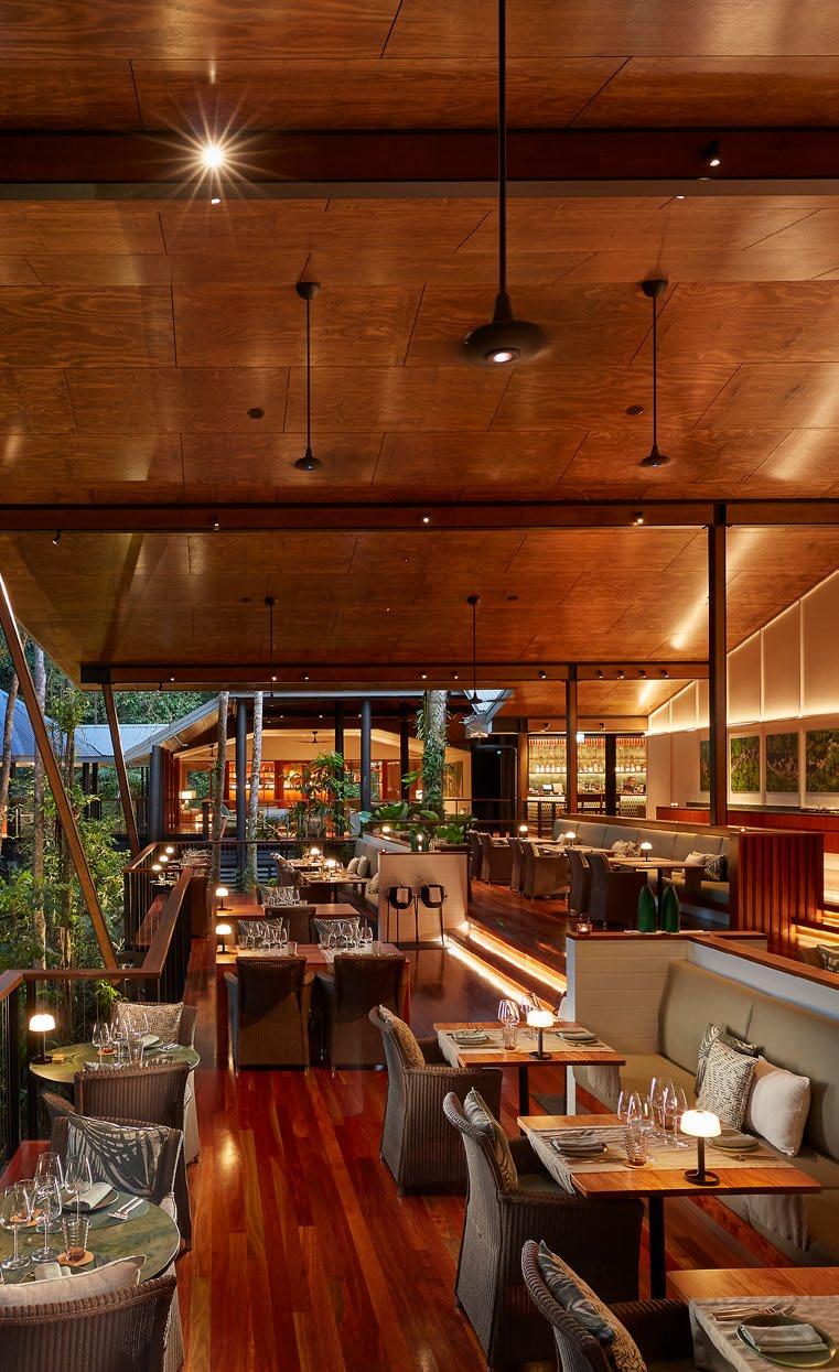 Set high above the ripple and rush of the Mossman River, the Treehouse Restaurant sets the scene for relaxed dining throughout the day. Sunset drinks and snacks at the bar provide the perfect segue into dinner where guests enjoy contemporary fare with an Asian influence and hints of Indigenous flavours, such as baby barramundi with miso and native honey, sugar snap peas with togarashi and blackberry yuzu sorbet with macadamia. Menus change daily with dishes all carefully paired with fine Australian wines ideal for raising a toast as the moon rises in the inky night sky.