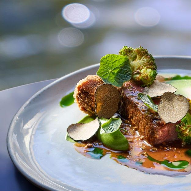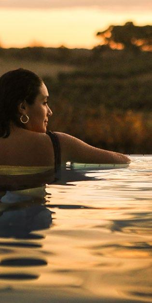 Guests enjoy the flavours and textures of the bush on the menu, with desert-foraged herbs, finger limes, muntrie berries, quandongs and Davidson plums creating a uniquely local dining experience.