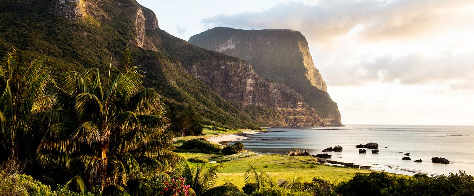 Lord Howe Island is a subtropical ‘treasure island’ preserved in time. An intoxicating blend of pristine beaches, rich pastures, lush rainforests and sheer volcanic peaks rising from the reef, Lord Howe is a sanctuary for rare plants, sea birds and marine life. Home to hundreds of rare and endemic species, a visit to the island has the sense of a National Geographic expedition.