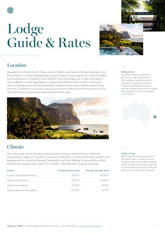 Reflecting the easy-going nature of the island, dress is smart casual at Capella Lodge. Comfortable walking shoes, a warm top and rain jacket are recommended year-round. A hat and sunscreen are every-day essentials.