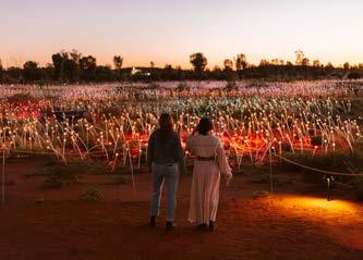 Illuminating the outback every night, Field of Light covers an area greater than four football fields on land owned by Ayers Rock Resort, part of Voyages Indigenous Tourism Australia. The installation is positioned about 18 kilometres from the north side of Uluru. Longitude 131° is delighted to be an event partner in Field of Light and to share this magical experience for our guests with exclusive access.