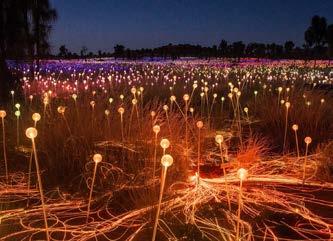 Australia’s ‘Red Centre’ has been transformed with the arrival of Bruce Munro’s Field of Light. Planted in the foreground of Uluru and comprising some 50,000 solar lights atop slender stems, the monumental installation creates a visual impression of a field of glowing buds which sway in the evening breeze as the sun sets over Australia’s spiritual heartland.