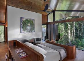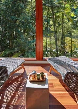 At Silky Oaks Lodge, luxury treehousestyle suites welcome in the sights and sounds of the Daintree Rainforest. Contemporary interiors flow seamlessly to generous verandahs featuring the essential tropical accessory: an inviting hammock ready to sway in the afternoon breeze.