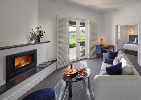 Leading from a central walkway lined with the region’s signature grapevines, 15 private suites open onto picturesque courtyards and provide luxury accommodation for up to 32 guests. Inside, guests make themselves at home in generous, high-ceilinged lounging spaces, luxuriously appointed king beds and ensuite bathrooms. An intimate workspace and in-suite bar lead to French doors which open to the Barossa’s gently rolling fields and vineyards.