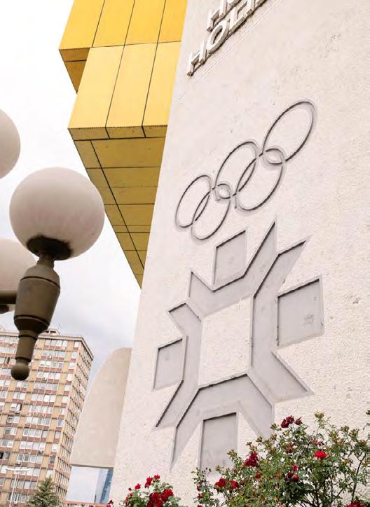 Opened in ‘84 during the Winter Olympics, Hotel Holiday stands as a symbol of the Olympics and Sarajevo, with the ‘84 Olympics logo etched on its facade.