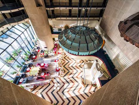 The representative lobby, intricately designed and imbued with the Olympic Spirit, transports guests to an era of significant postmodernist, architectural, artistic, and cultural advancements in former Yugoslavia and beyond.