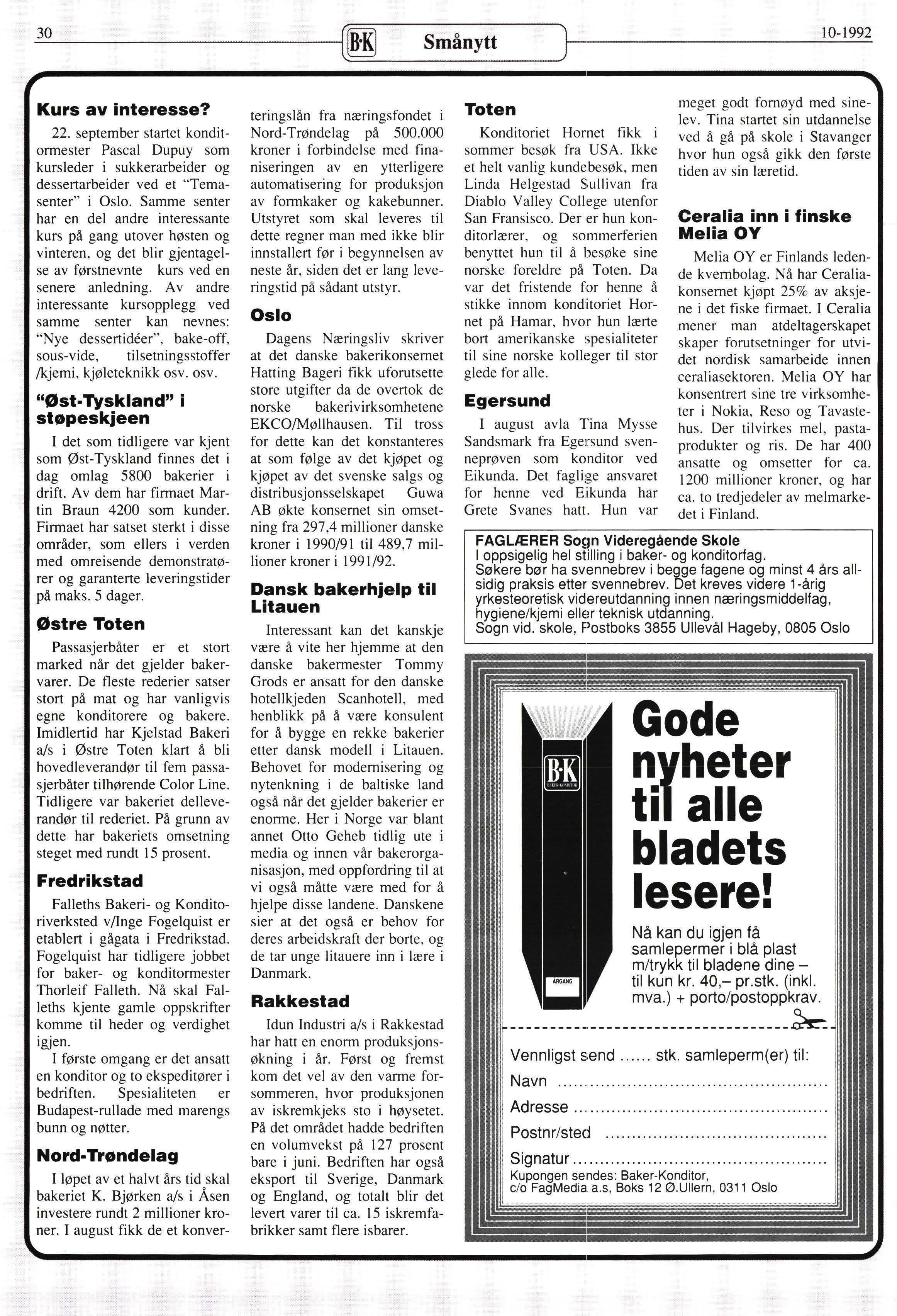 Utgitt av Baker- og Konditorbransjens Landsforening