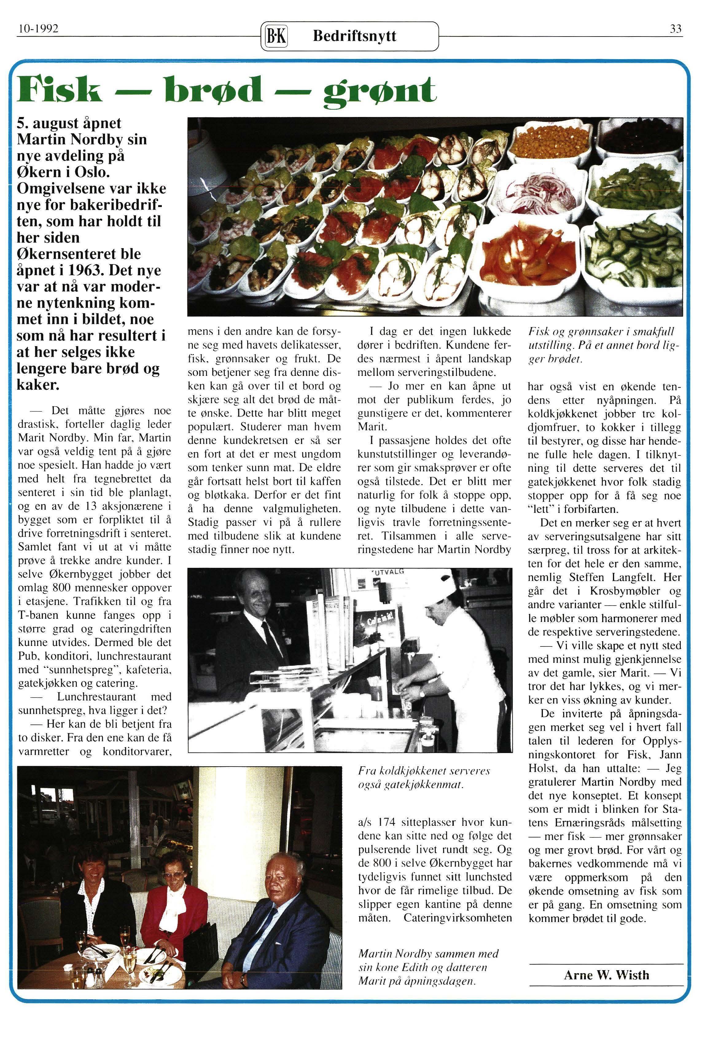 De inviterte på åpningsdagen merket seg vel i hvert fall talen til lederen for Opplysningskontoret for Fisk, Jann Holst , da han uttalte: - Jeg gratulerer Martin Nordby med det nye konseptet. Et konsept som er midt i blinken for Statens Ernæringsråds målsetting - mer fisk - mer grønnsaker og mer grovt brød. For vårt og bakernes vedkommende må vi være oppmerksom på den økende omsetning av fisk som er på gang. En omsetning som kommer brødet til gode.